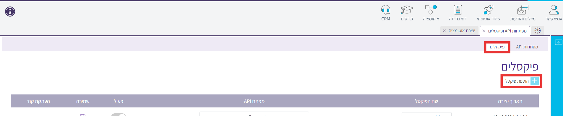 על מנת להפעיל אוטומציה באמצעות פיקסל יש לבצע את הפעולות הבאות לפי הסדר :