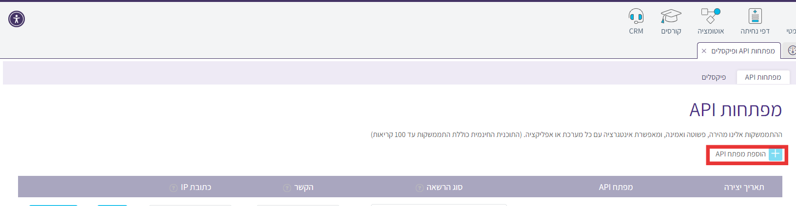 מדריך ליצירת מפתח API > יצירת מפתח API