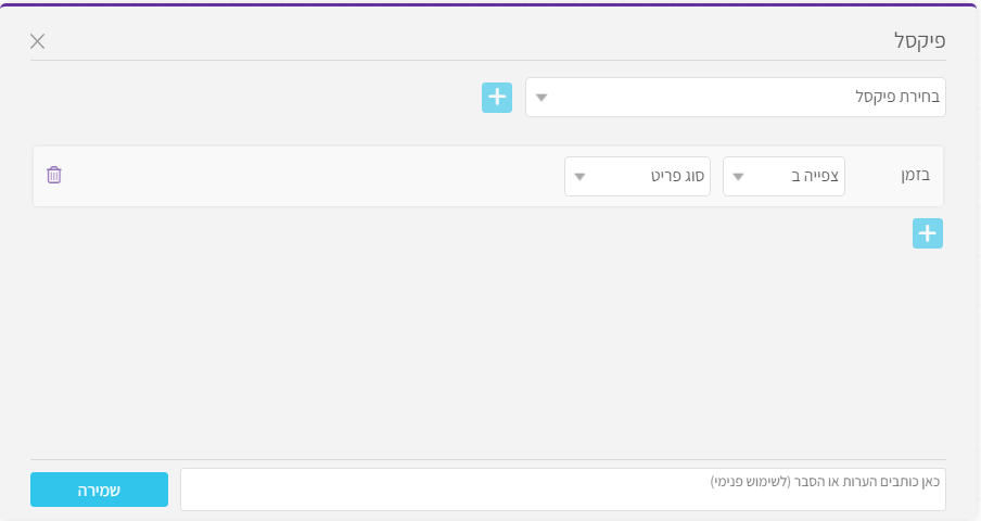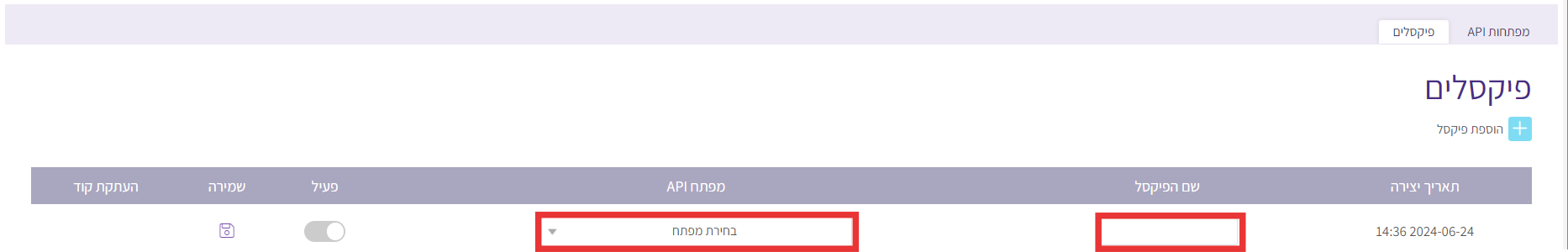 - בשדה "שם הפיקסל" – יש להגדיר שם אשר יתאר את תפקיד הפיקסל או הקשרו
