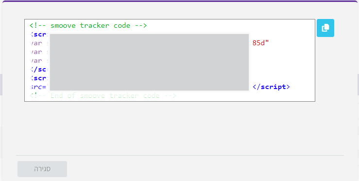 העתקת הקוד מתאפשרת ע"י לחיצה על "העתקת קוד" בשורת הפיקסל שנוצר
