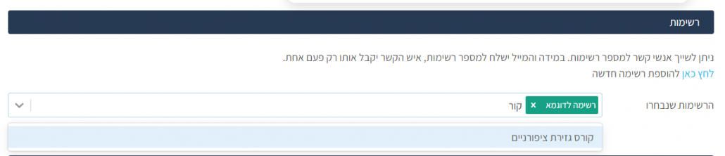 שיוך לרשימות והגדרת הרשאות איש קשר: