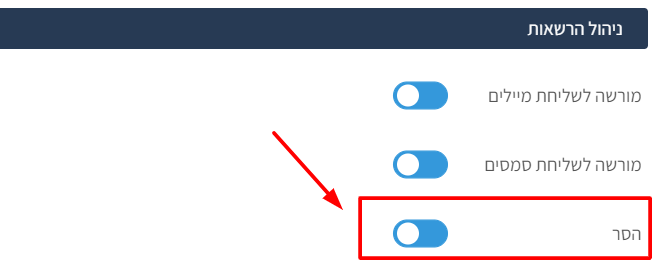בהמשך להגדרת ההרשאות, השדה התחתון ביותר בעריכת איש קשר מאפשר את העברת לרשימת החסומים.