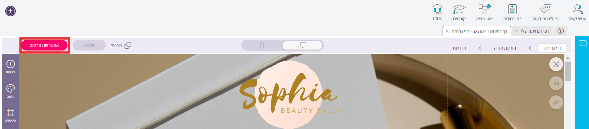 כאשר רוצים ליצור דף חדש עם אותו הדומיין וסאב הדומיין שהגדרנו בשלב הקודם ניגש לאפשרויות הפירסום של הדף