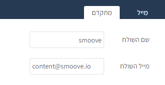 אנחנו בעלי הדומיין הפרטי smoove.io, מעוניינים לשלוח מייל בשם smoove, מכתובת המייל [email protected]. אלה הפרטים שנגדיר במייל: