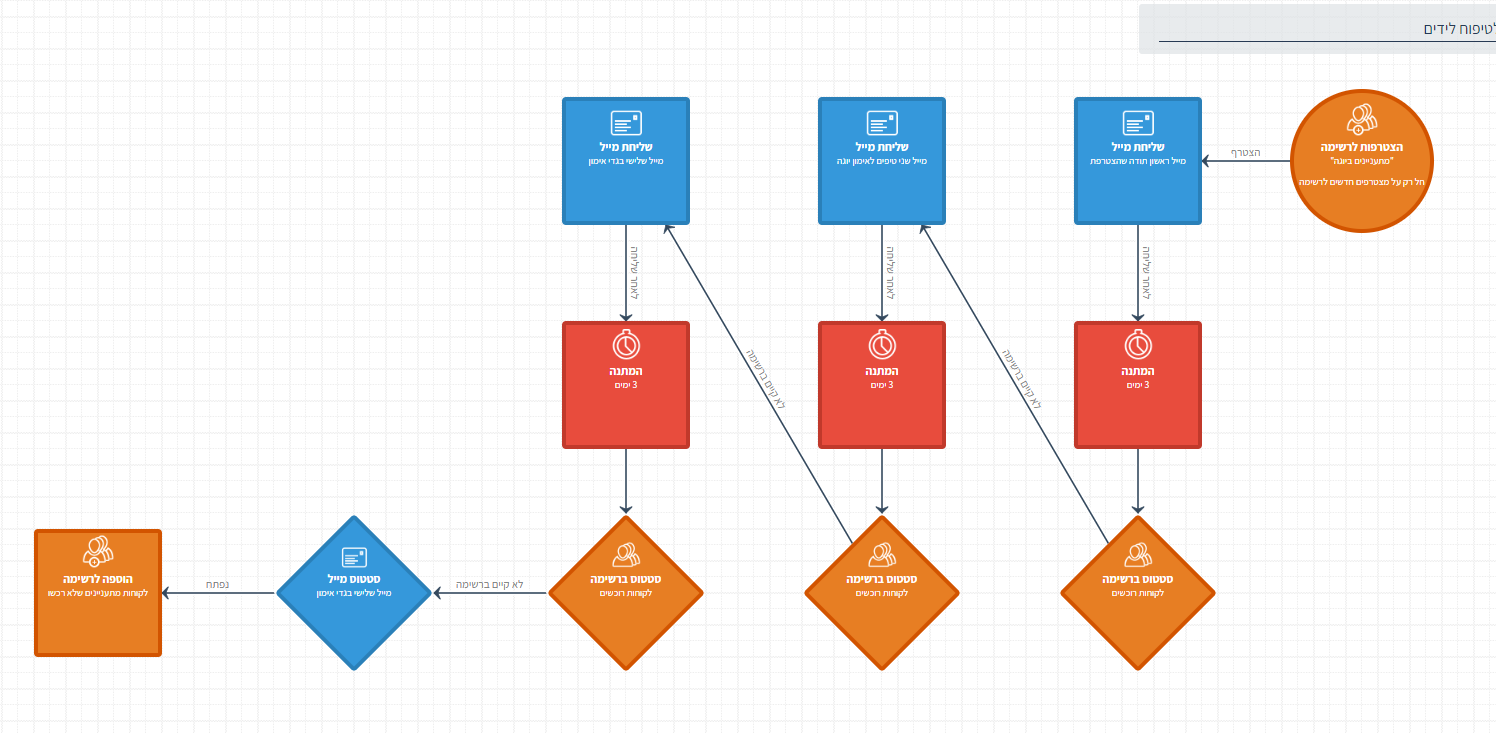 דוגמה למסע לקוח אוטומטי שמטרתו טיפוח לידים (לקוחות מתעניינים)