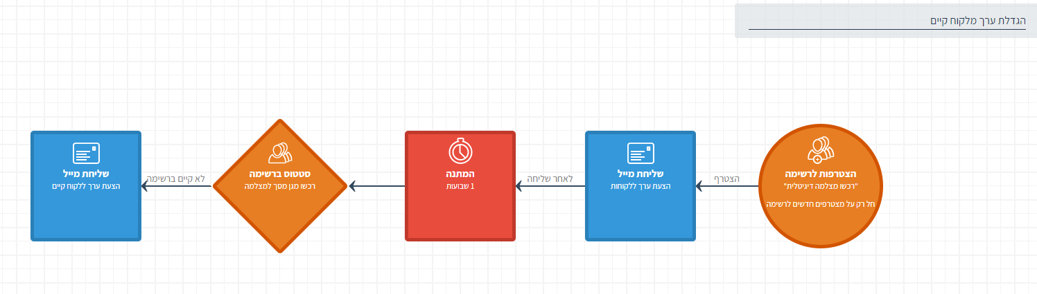 דוגמה למסע לקוח אוטומטי שהמטרה שלו להגדיל ערך מלקוח קיים, לאחר שכבר ביצע רכישה