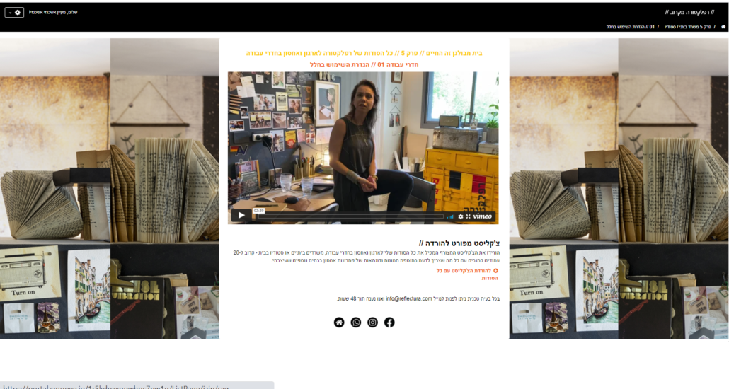 "עשיתי הכל לבד, וגם לימדתי את העוזרת שלי איך לעשות את זה, והיא בנתה לבד לגמרי את הקורס השני שעומד לעלות בקרוב גם לפורטל, וזה קורס מקיף ומקצועי.