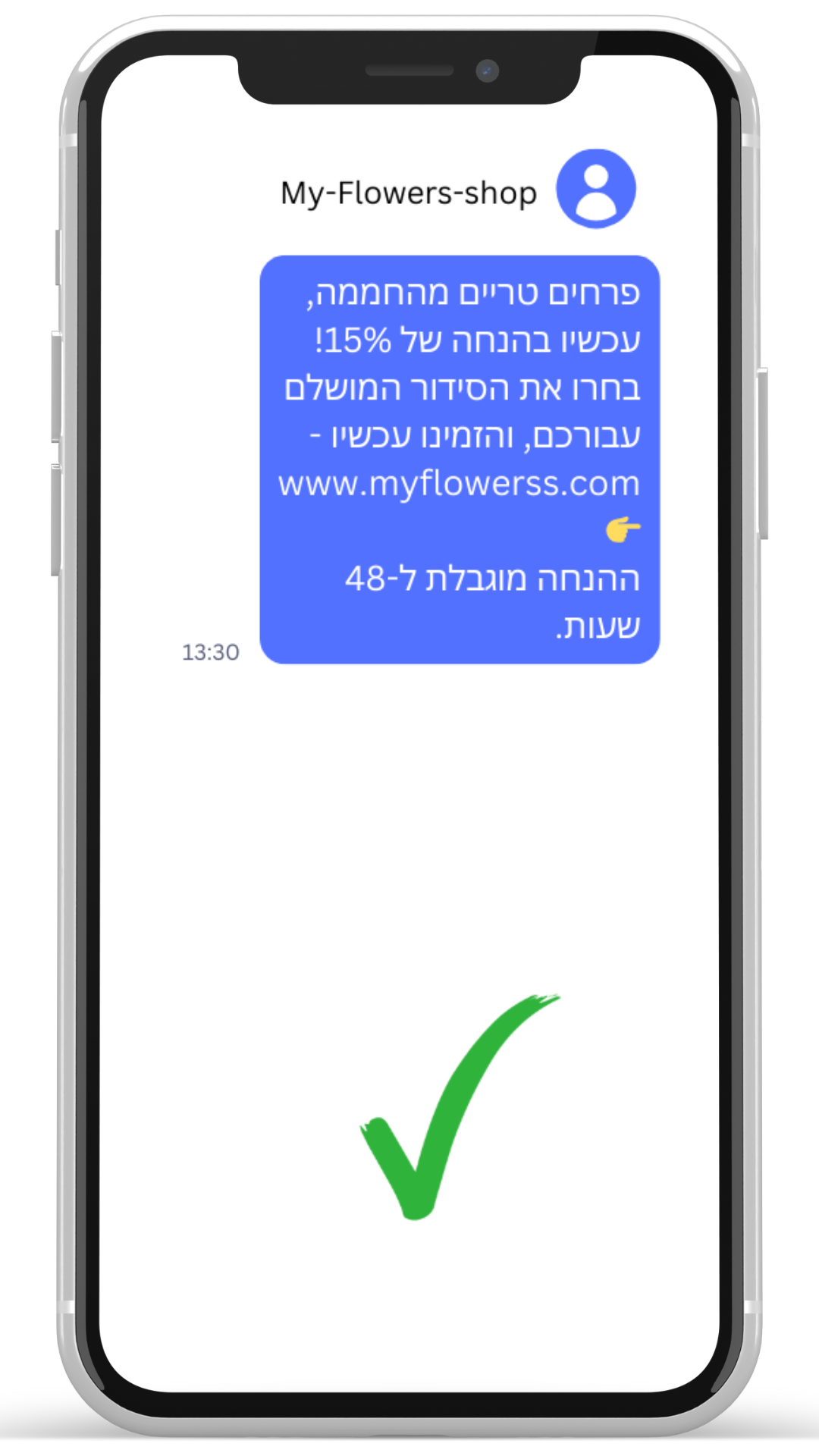 סמס שמרגיש אישי ומדבר ישירות ללקוח, מגדיל משמעותית את הסיכוי לפעולה. הוספת פנייה אישית או התאמות נוספות המבוססות על נתונים שנאספו בשדות אישיים – יכולים להפוך הודעה גנרית, להודעה סופר רלוונטית ומניעה לפעולה.