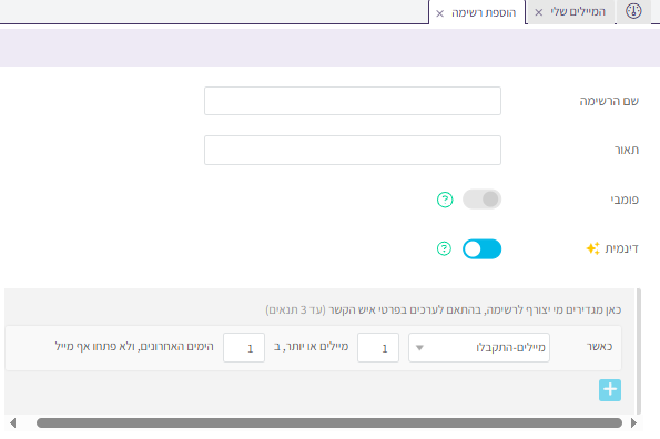 הכלי הראשון מתייחס ליצירת רשימה דינאמית במערכת, אליה נכנסים (ויוצאים) אנשי קשר, בהתאם לתנאי שנציב – במקרה הזה, נבקש את אלה שלא פתחו X דיוורים ב-Y תקופה. הרשימה כבר תעדכן את עצמה מדיי יום: